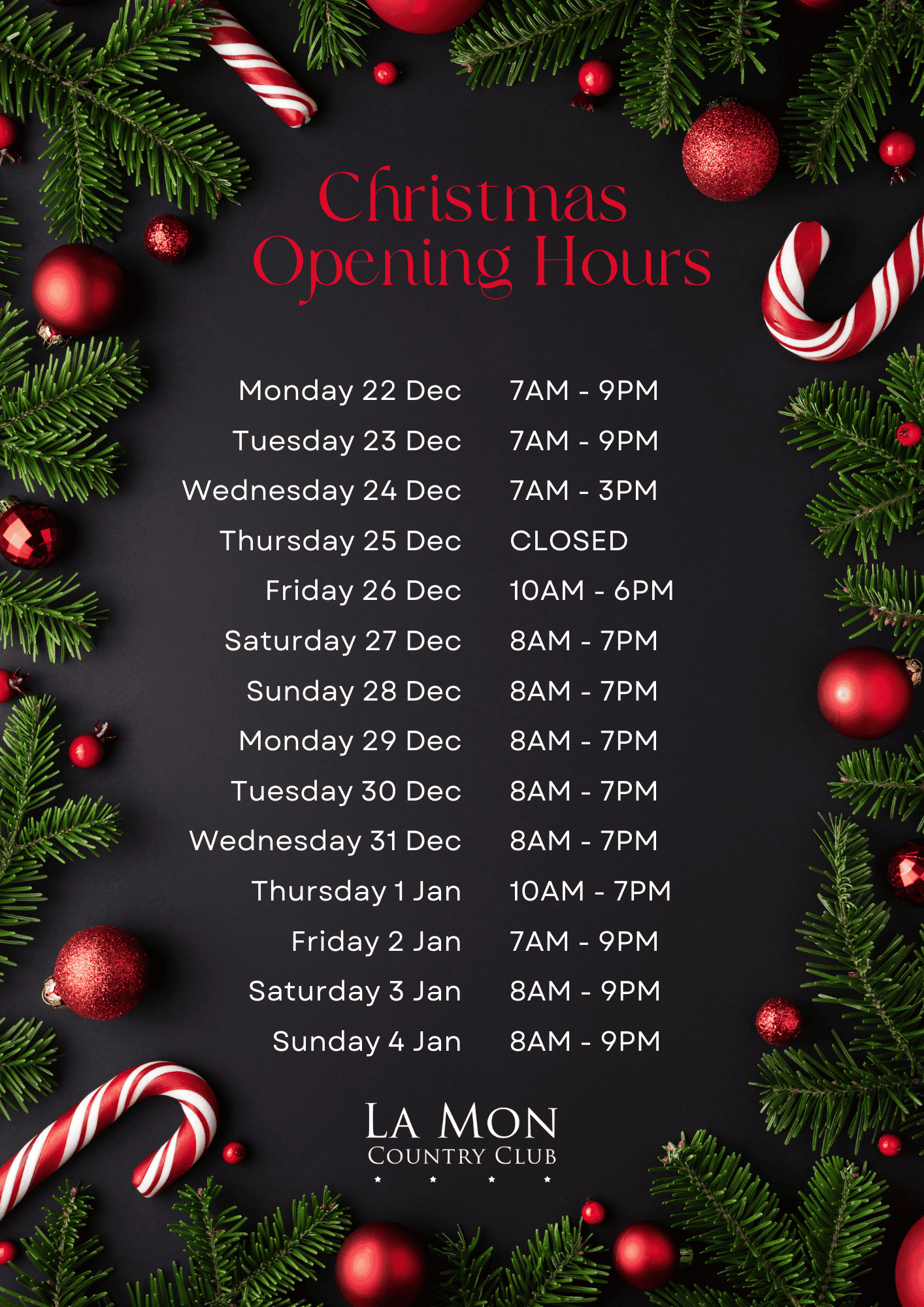 Christmas Opening Hours: